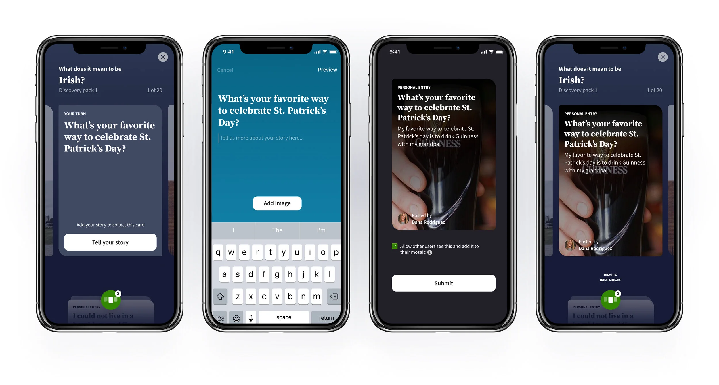 The discovery belt was the primary focus of the product and drove the vision of crafting and creating a mosaic. The idea was to give our customers a mechanism to craft their own ideas of what it meant to be connected to a culture through provided and user generated content. Customers selected a “pack” that brings them to the discovery belt. Each belt had a set of collectible cards that enabled customers to build out their mosaic which could be shared to others to learn from or about the the interests of the particular parts of the culture you felt connected with.